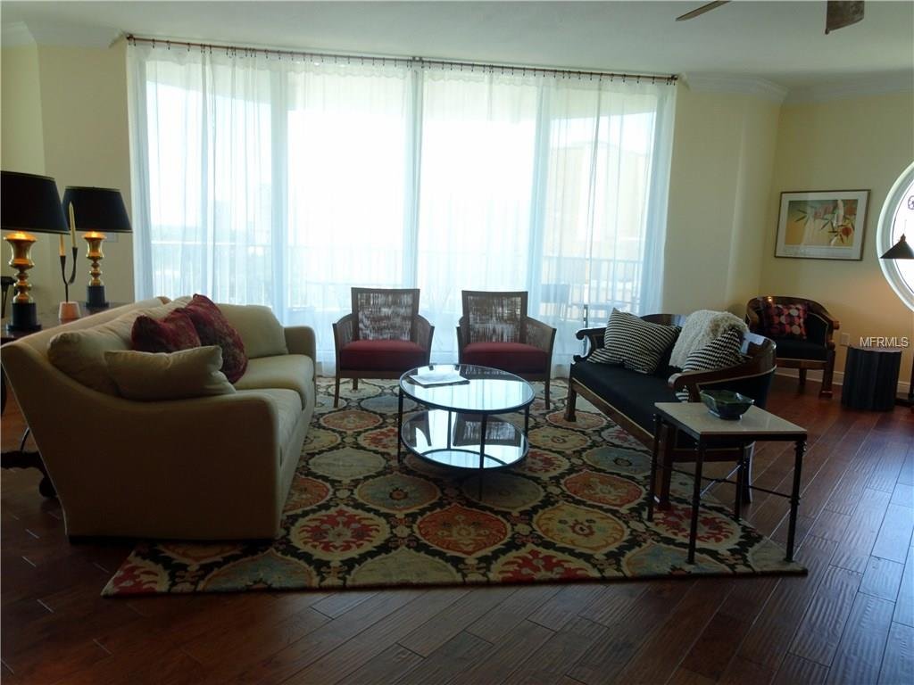 SEASONAL – Downtown 2 bed / 2 bath condo in a stunning contemporary high rise building. There is also a spacious den/office with a double pullout for an overnight guest. The panoramic floor to ceiling living room windows and large balcony, a perfect spot for your morning coffee, overlook the beautiful, wooded, historic neighborhood of Laurel Park and artist colony of Towles Court. There is another private terrace off the guest bedroom. Walking distance to an array of entertainment, shopping, restaurants and Payne Park with its 12 beautifully maintained Har-Tru tennis courts. The concierge staffed building offers swimming, jacuzzi and a state of the art workout gym. There is a gas grill and outdoor dining options. Bicycle storage is on the ground floor for easy access as well as kayak storage. The rent includes bi-weekly cleaning service, leaving you free to fully enjoy the wonderfully convenient downtown Sarasota lifestyle. Call for off-season rates and availability. AVAILABLE FOR HIGH SEASON 2021.